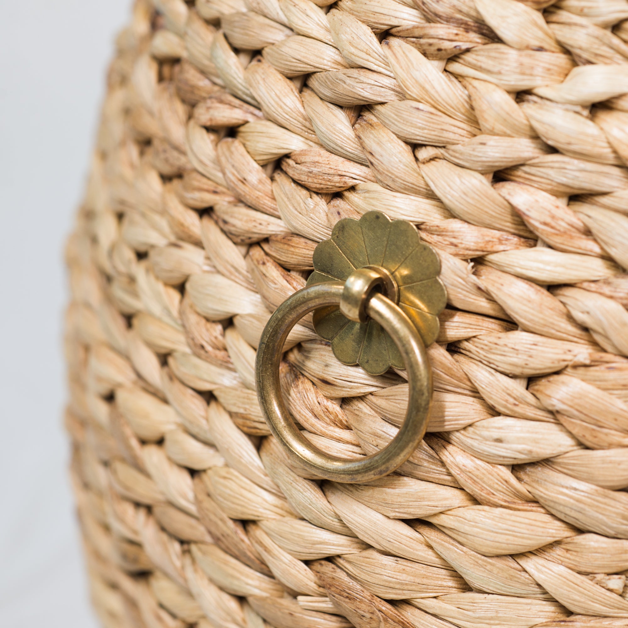 Eco-friendly water hyacinth fibres handwoven over a sturdy rattan frame, finished with a water soluble clear coat for more durability. Complete with solid brass handles.