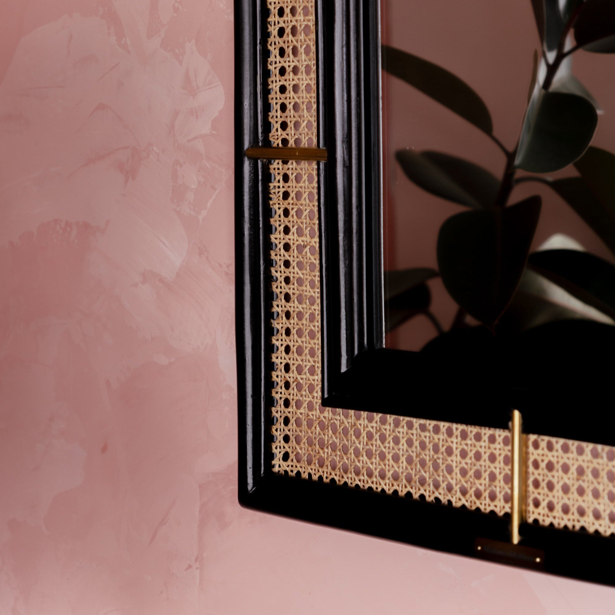 Made from sustainable rattan treated with eco-friendly black lacquer and natural wicker, and solid brass for a touch of classic elegance.