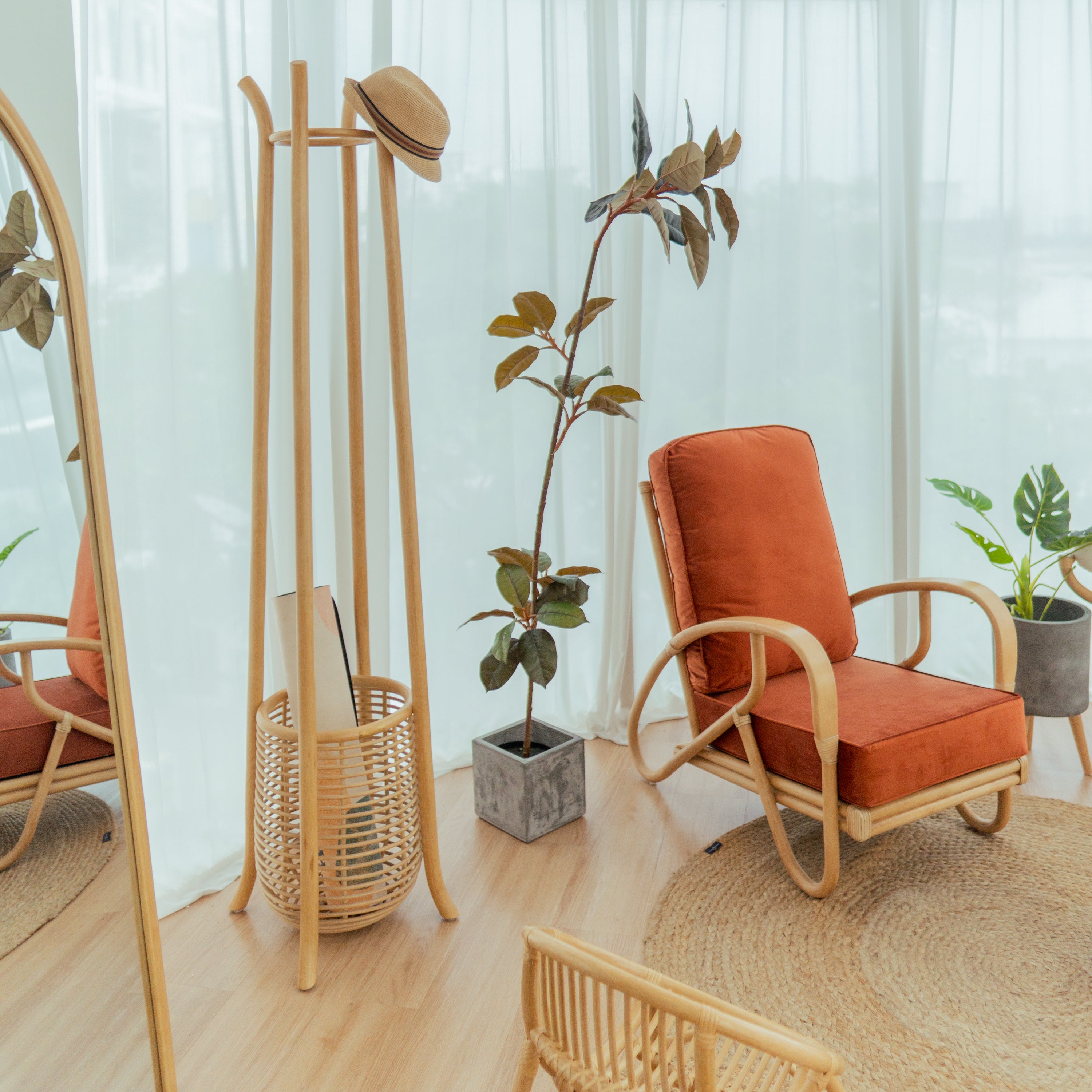 Made from sustainable rattan treated with an eco-friendly clear coat.