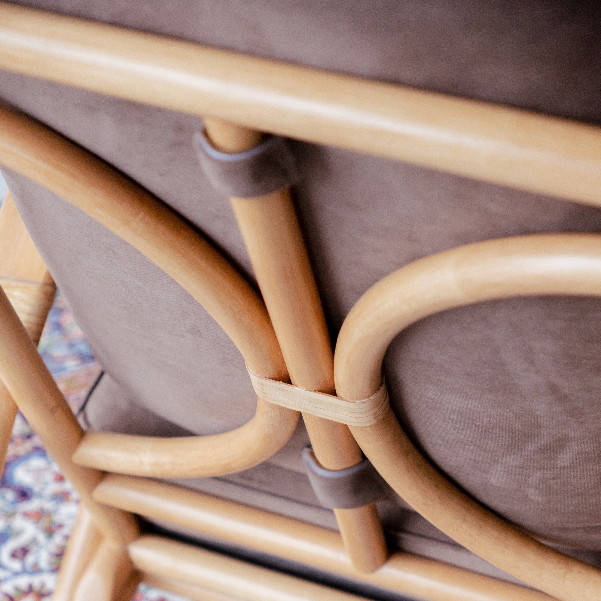 At first glance, most would assume that the armrests are made of wood. On closer inspection, feel under the armrest and you will notice that the armrest is actually made of two pieces of rattan, with the top surface sanded and shaped down to look like a seamless single piece. This creates comfort for use as an armrest, and also gives a new form and aesthetic to the way rattan is normally used.