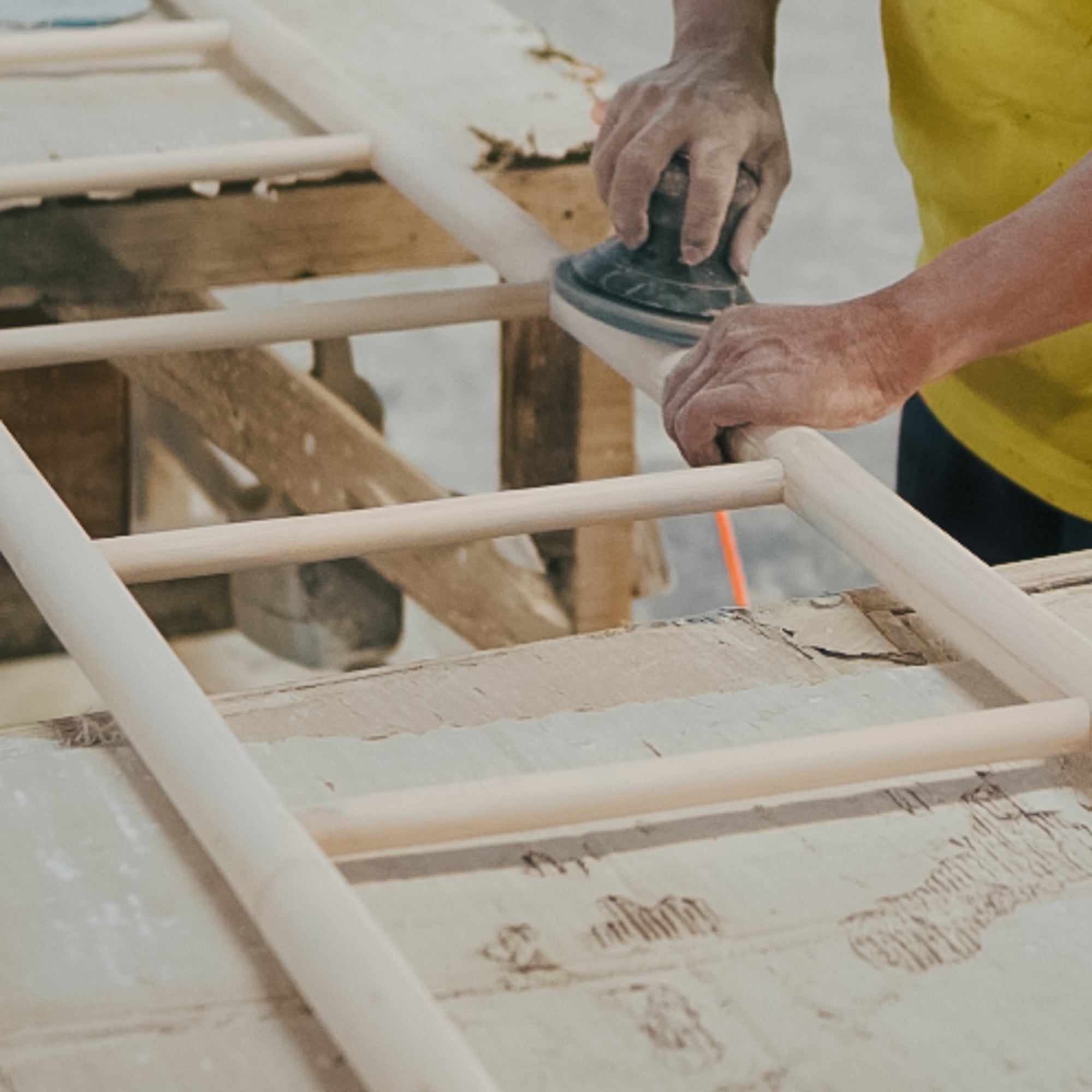 Our craftsman sands the ladders so that the finish is smooth to use.